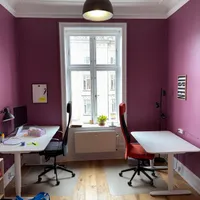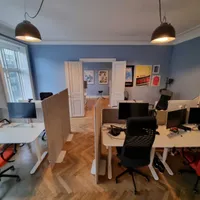 Velkommen til et uformelt og socialt kontorfællesskab midt på Vesterbro. Her får du en lys og hyggelig arbejdsplads med god energi, hvor det er nemt at falde i snak, spise frokost sammen og samtidig have ro til fordybelse. Du kommer til at dele kontoret med Hyperbolic, et København-baseret softwareteam, samt andre faste brugere i huset - en god blanding af tech og kreative profiler.