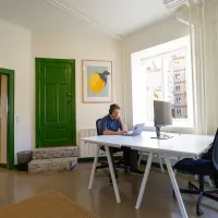 Kontoret rummer et lille, tæt community med i alt ca. 10 pladser. Her får du et lyst, roligt arbejdsmiljø med alt det, man forventer af et velfungerende kontor: hurtigt internet, et mødelokale med fladskærm og whiteboard samt en indretning, der inviterer til både fokus og samarbejde. Med 24/7-adgang kan du arbejde, når det passer dig – og beliggenheden i København SV gør det let at komme til med både offentlig transport og bil, samtidig med at der er grønne områder i nærheden.